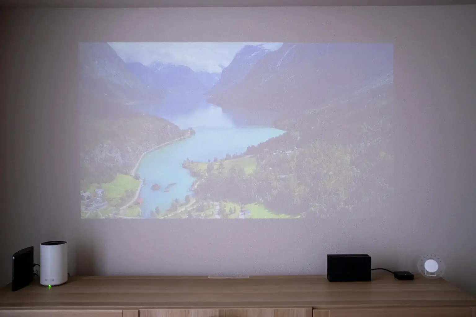 特に寝室で天井に投影して使用する際は、枕元に置いていることもあり音が気になるかと心配していたのですが、それでも駆動音が気になるということはなかったです。