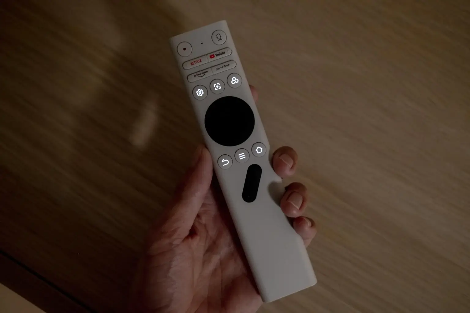 映画などのコンテンツを視聴中は部屋を真っ暗にすることもあり、リモコンのボタンがわかりづらいですが、主要なボタンが光ってくれることで暗闇の中でも快適に操作することができます。