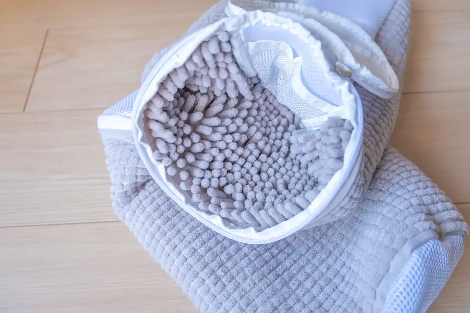 ROSY LILYのズックリーンネットは、マイクロファイバーの裏起毛が汚れを優しく洗い出してくれるので、この中に靴を入れて洗濯機で洗うだけで、新品同様に綺麗になります。