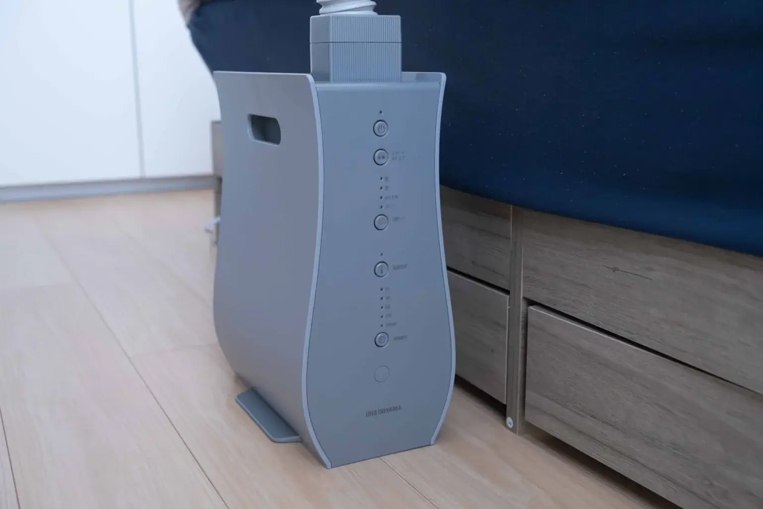また、僕が購入したアイリスオーヤマのカラリエシリーズから販売されている布団乾燥機はデザインが非常によく、常にベッドサイドに出しっぱなししていても、景観を汚すことがないのでおすすめです。