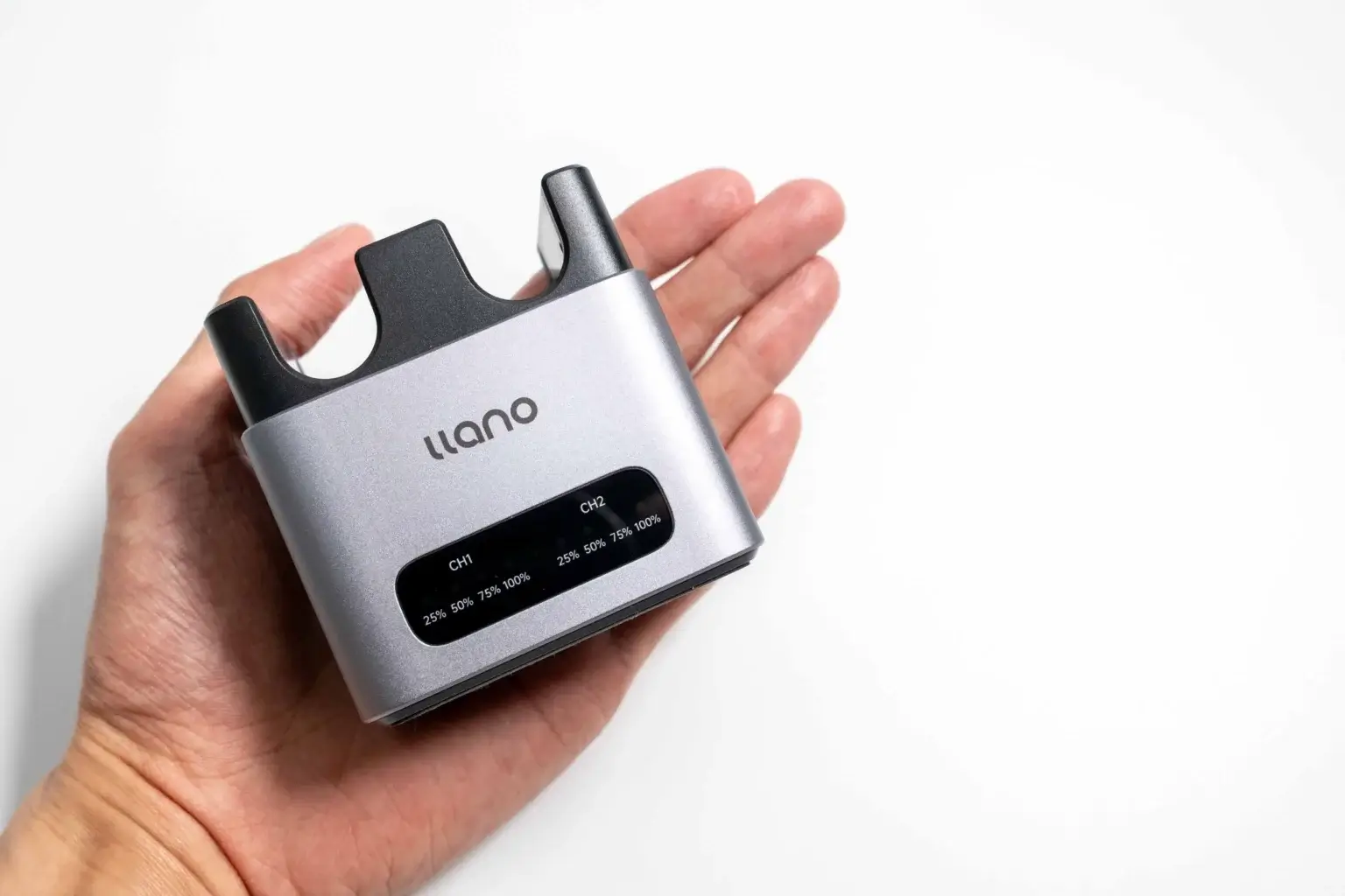 llanoのカメラバッテリー用充電器は、2つのバッテリーを同時に充電することができ、なんといってのコンパクトなのが特徴です。