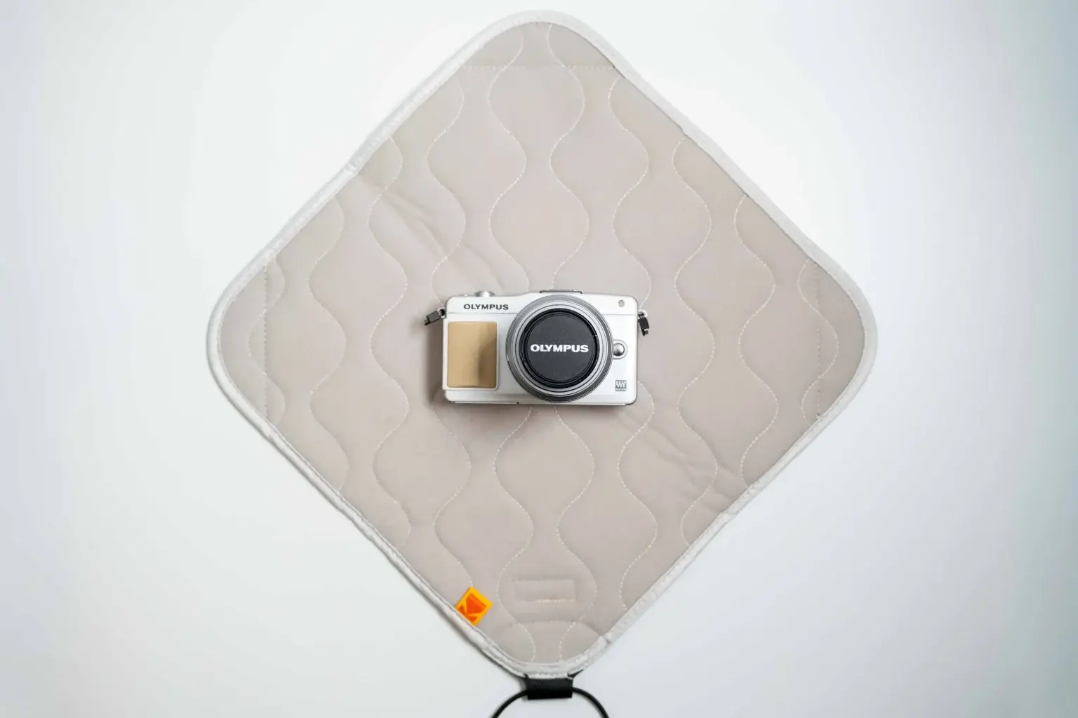 程よいクッション性があるだけでなく、耐水性能と防塵性能があるので、あらゆる環境下でカメラを守ってくれ、。包むだけなのでコンパクトに持ち運ぶことが可能です。