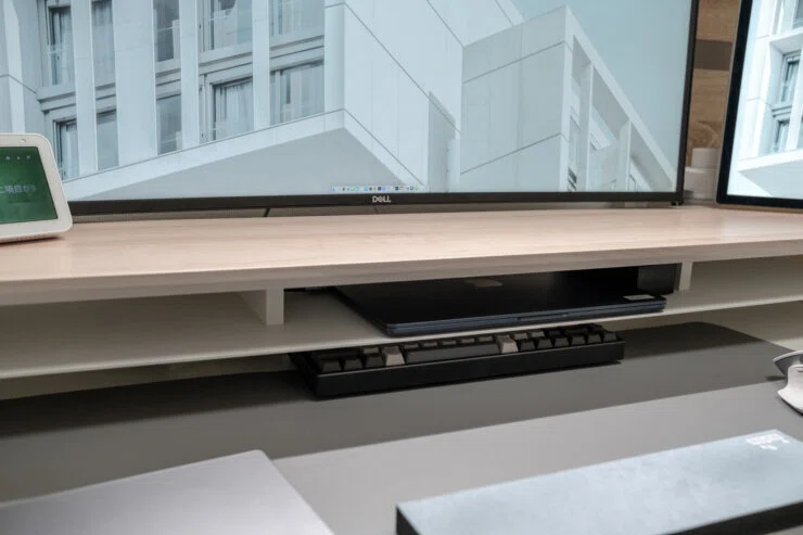 Fengeのモニタースタンドは3段階で物を置くことができ、デスク上を占有しがちなPCやタブレットを収納することができます。