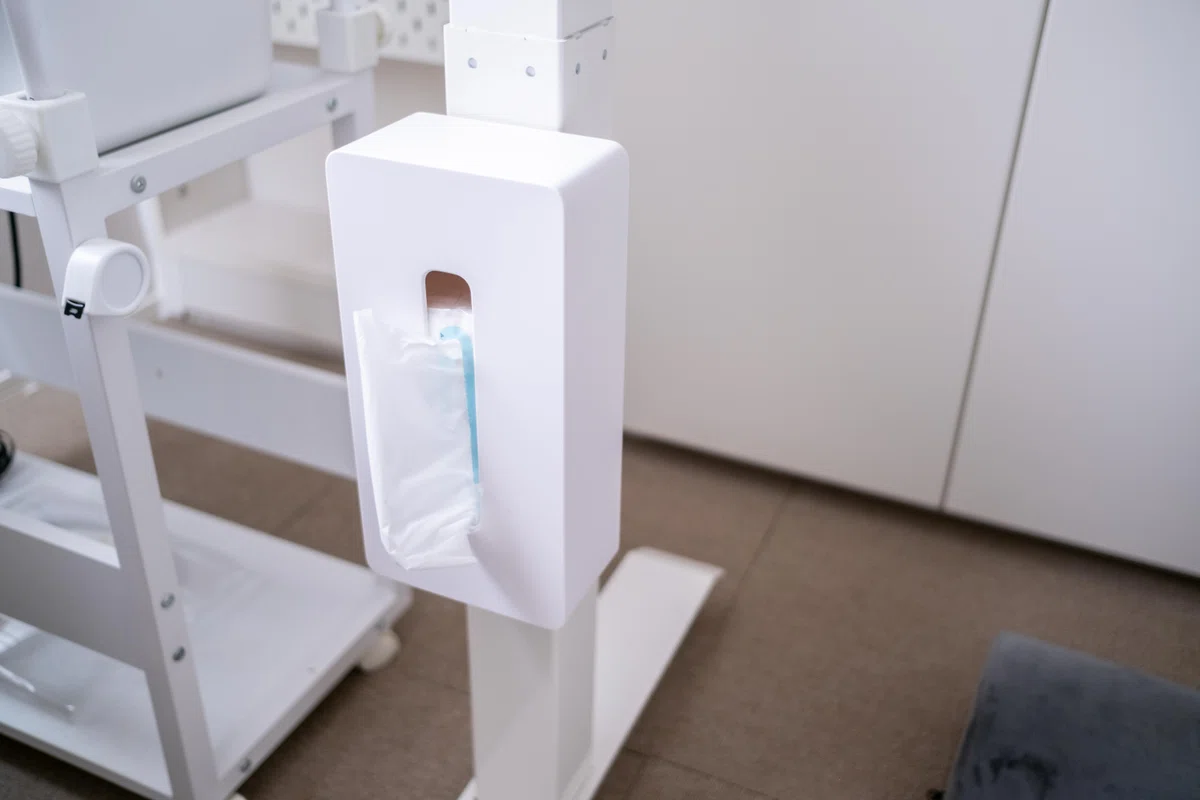 ティッシュケース自体はプラスチックのケースで覆われた、至ってシンプルなデザインをしており100均にも売ってそうですが、従来のティッシュケースと異なる点が背面にマグネットが搭載されており、デスクの脚などにくっつけることが可能になっています。