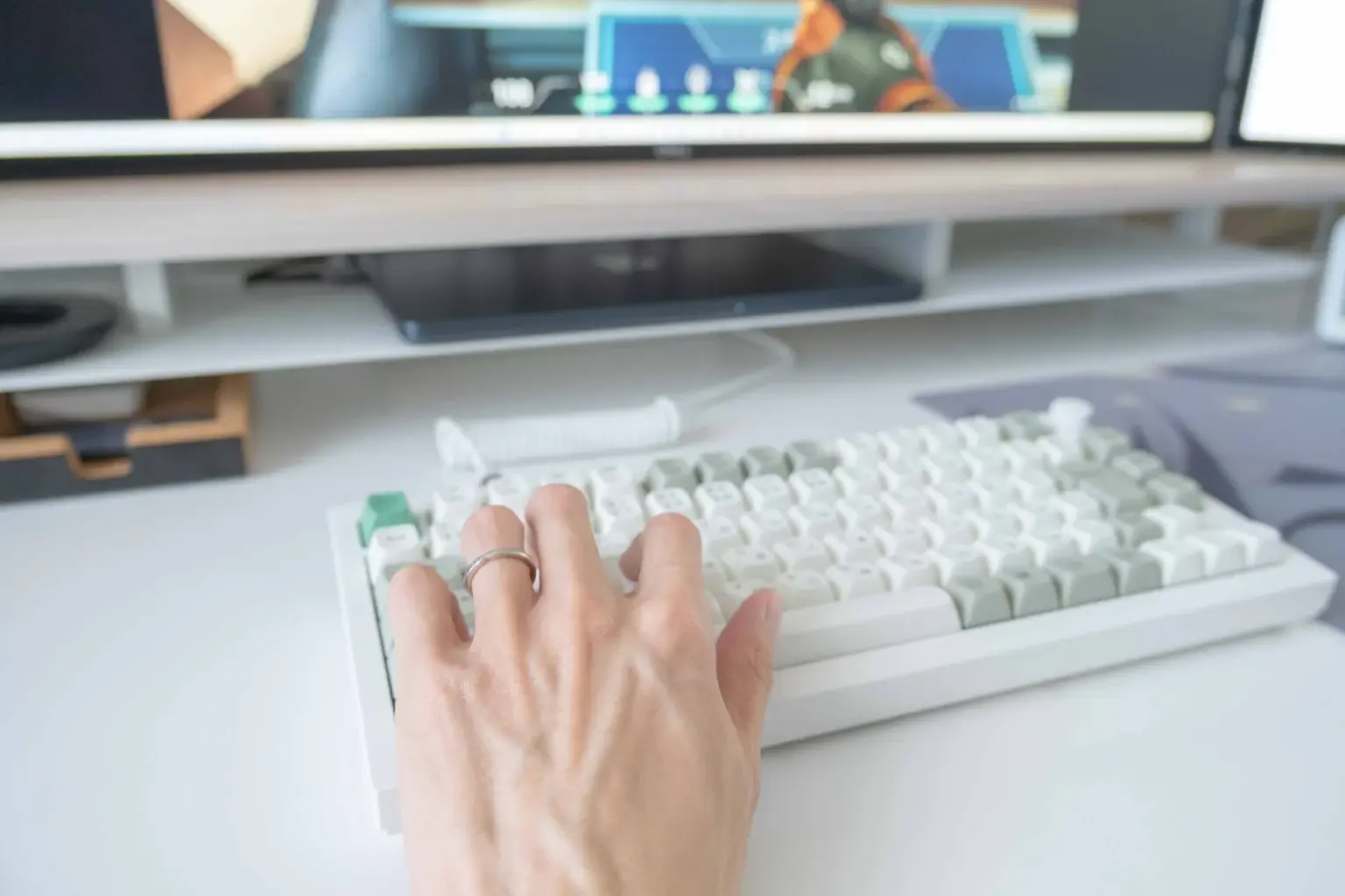 本来ならMac用とWindows用といったように2台のキーボードが必要になりますが、ゲームでも使用することができるのでKeychron Q1 Maxなら1台に集約し、デスク上もすっきりとさせることができます。