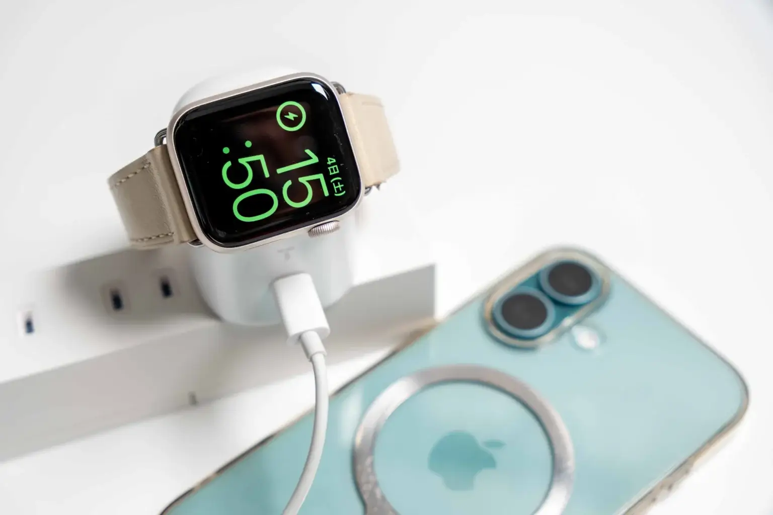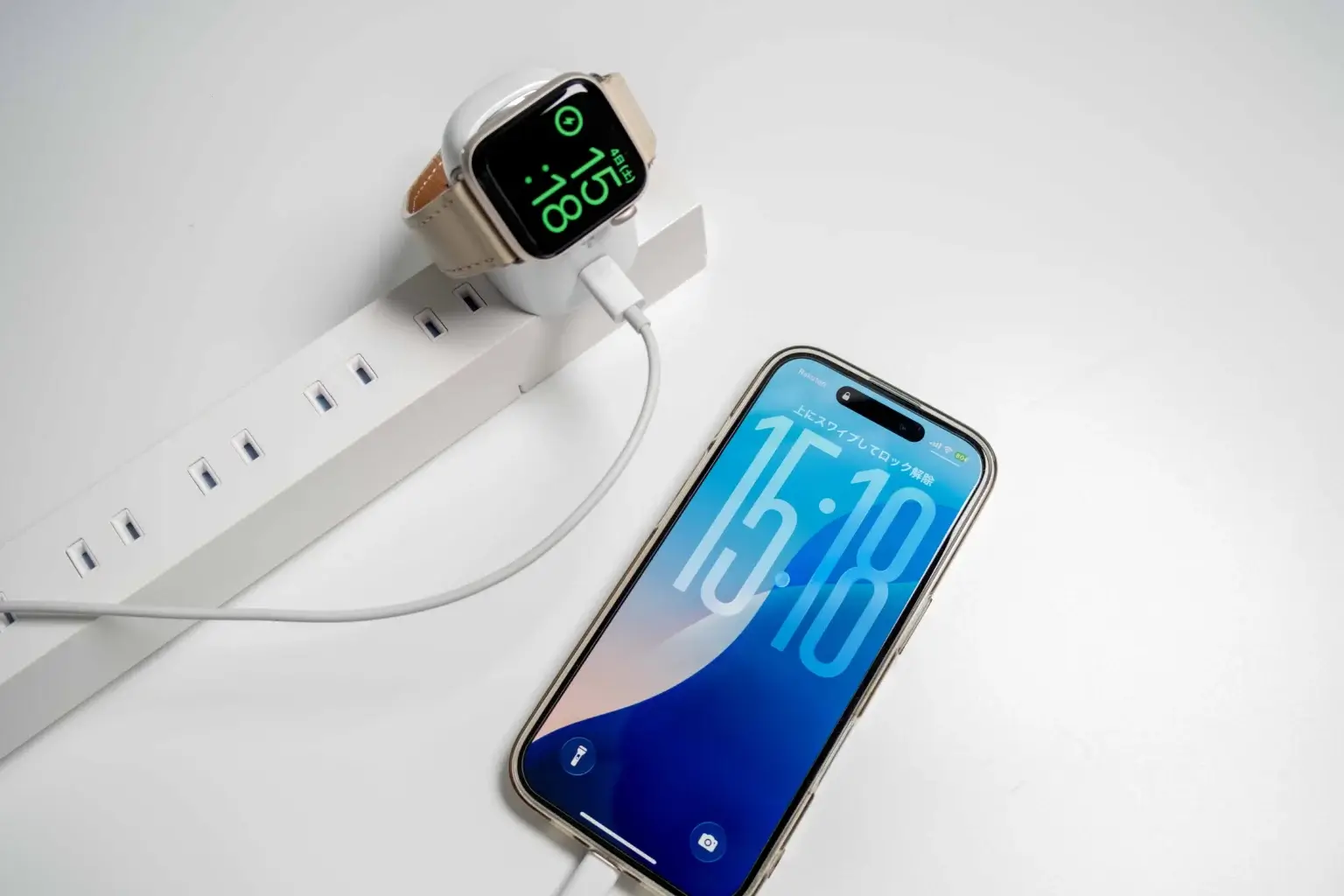 一方で、AppleWatchの充電は1時間足らずで完了し、同時に使用する場面も少ないと思われるので、運用面でカバーすることができそうです。
